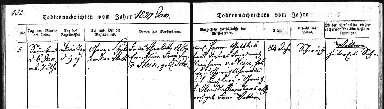 Todtennachrichten vom Jahre 1827 Jan. [Januar]