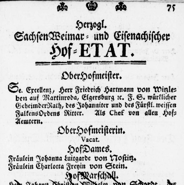 (Freyer, Stefanie: Der Weimarer Hof um 1800 – Eine Sozialgeschichte jenseits des Mythos, Oldenbourg Verlag München, 2013, S. 521)